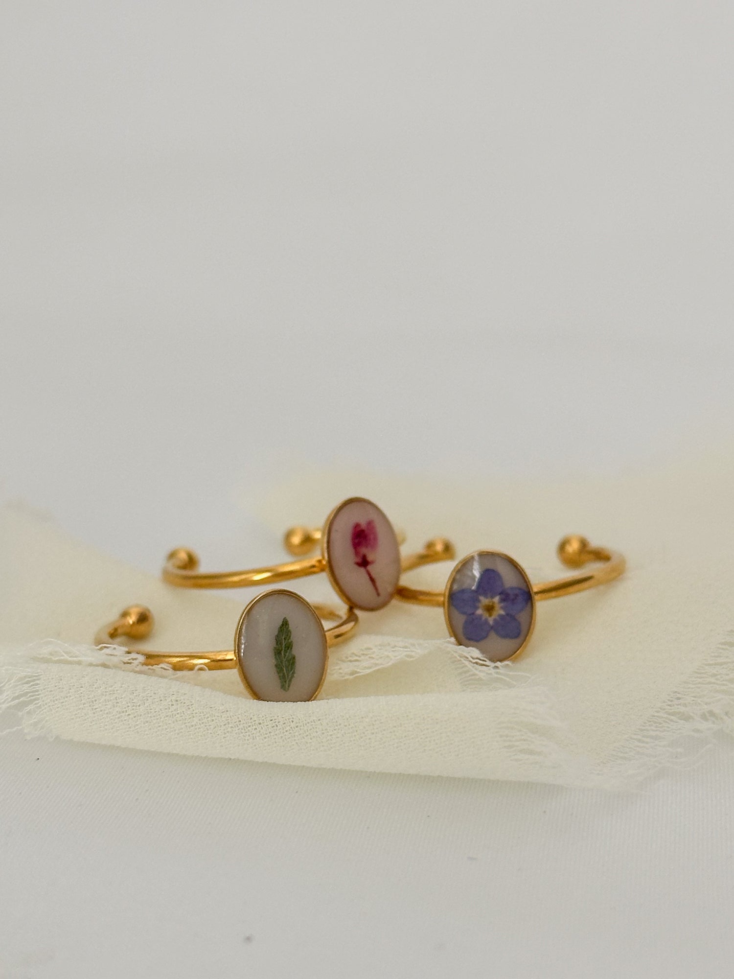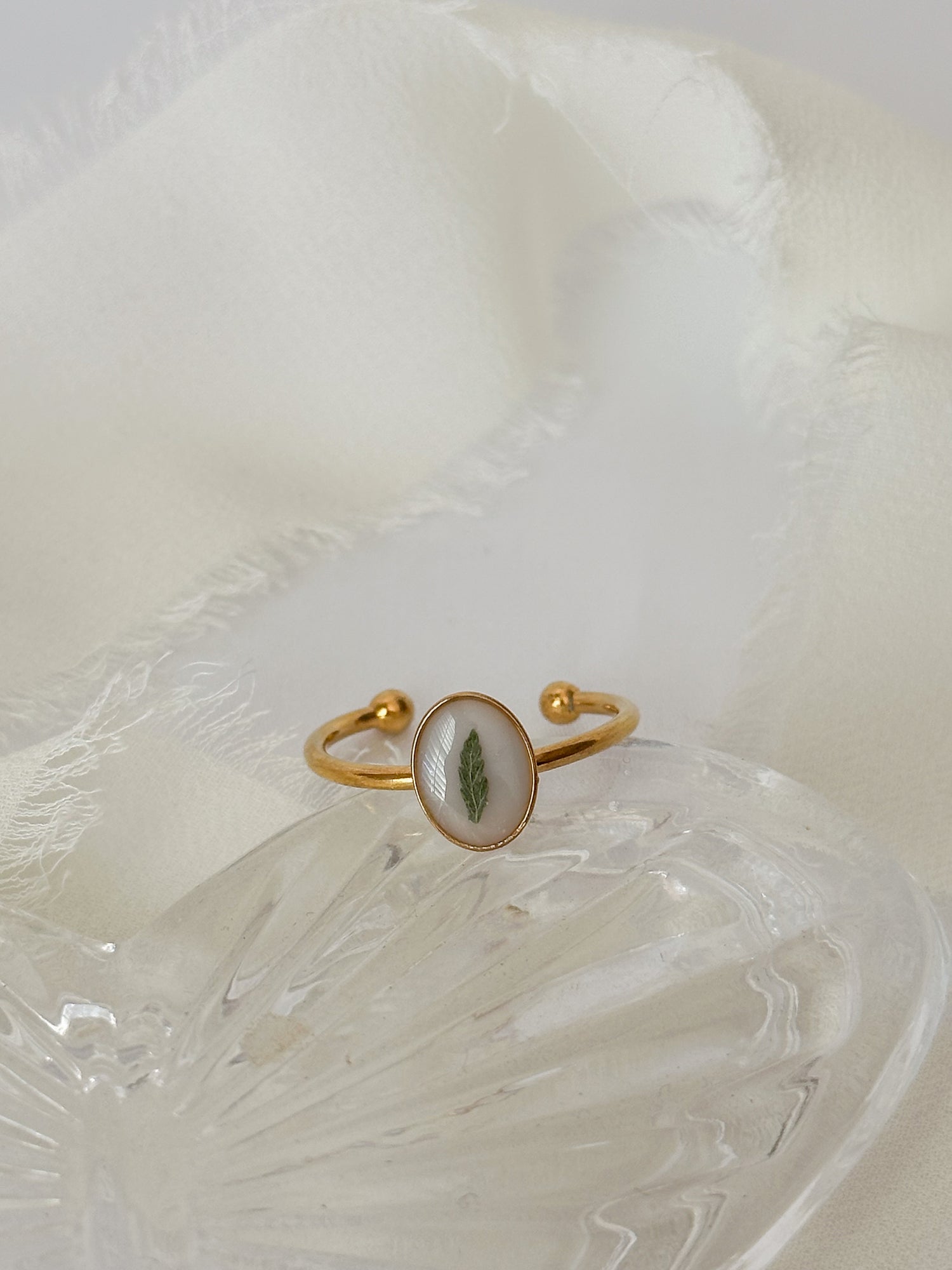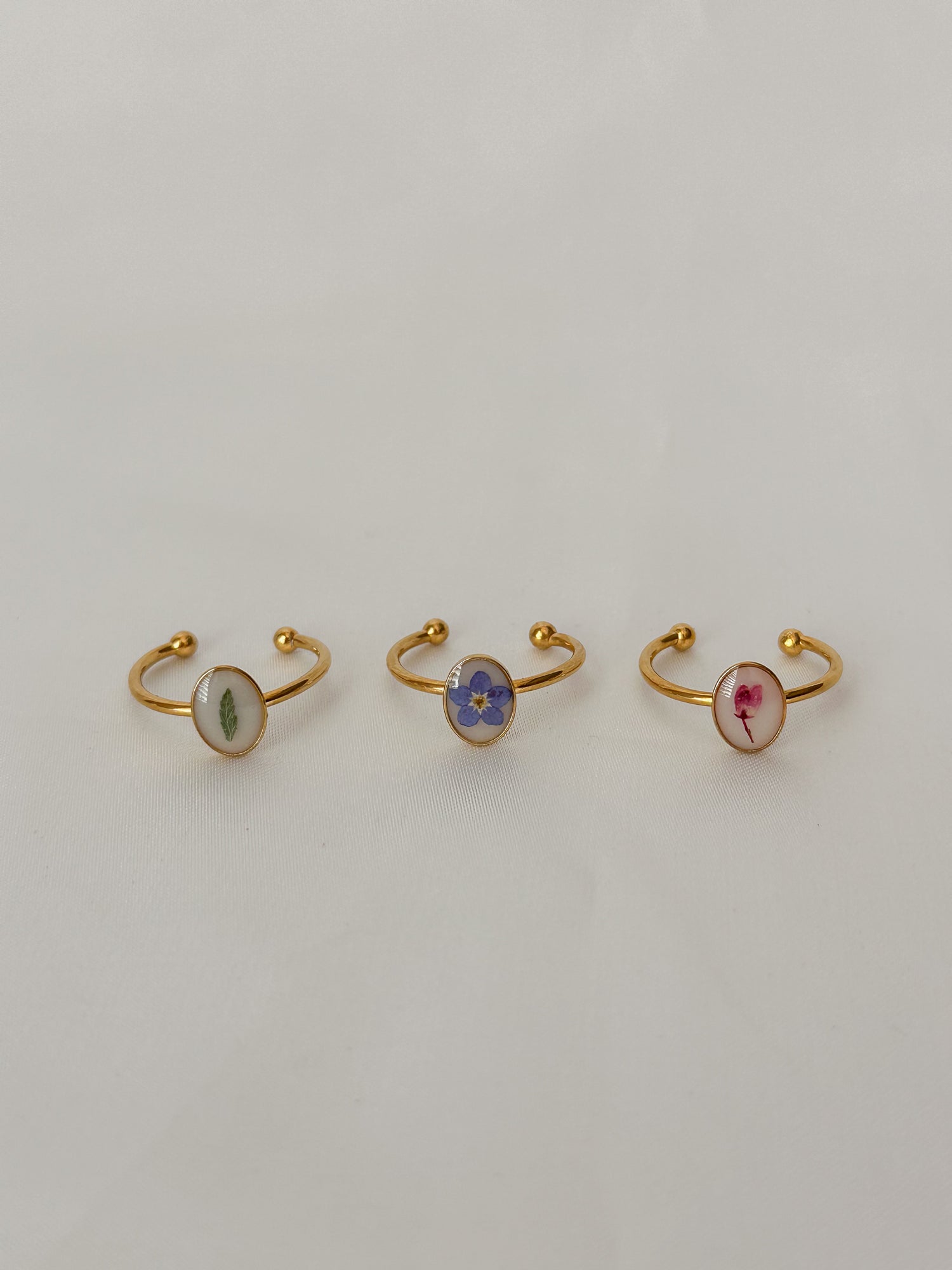 Dainty Pressed Flower Adjustable Ring (Oval)