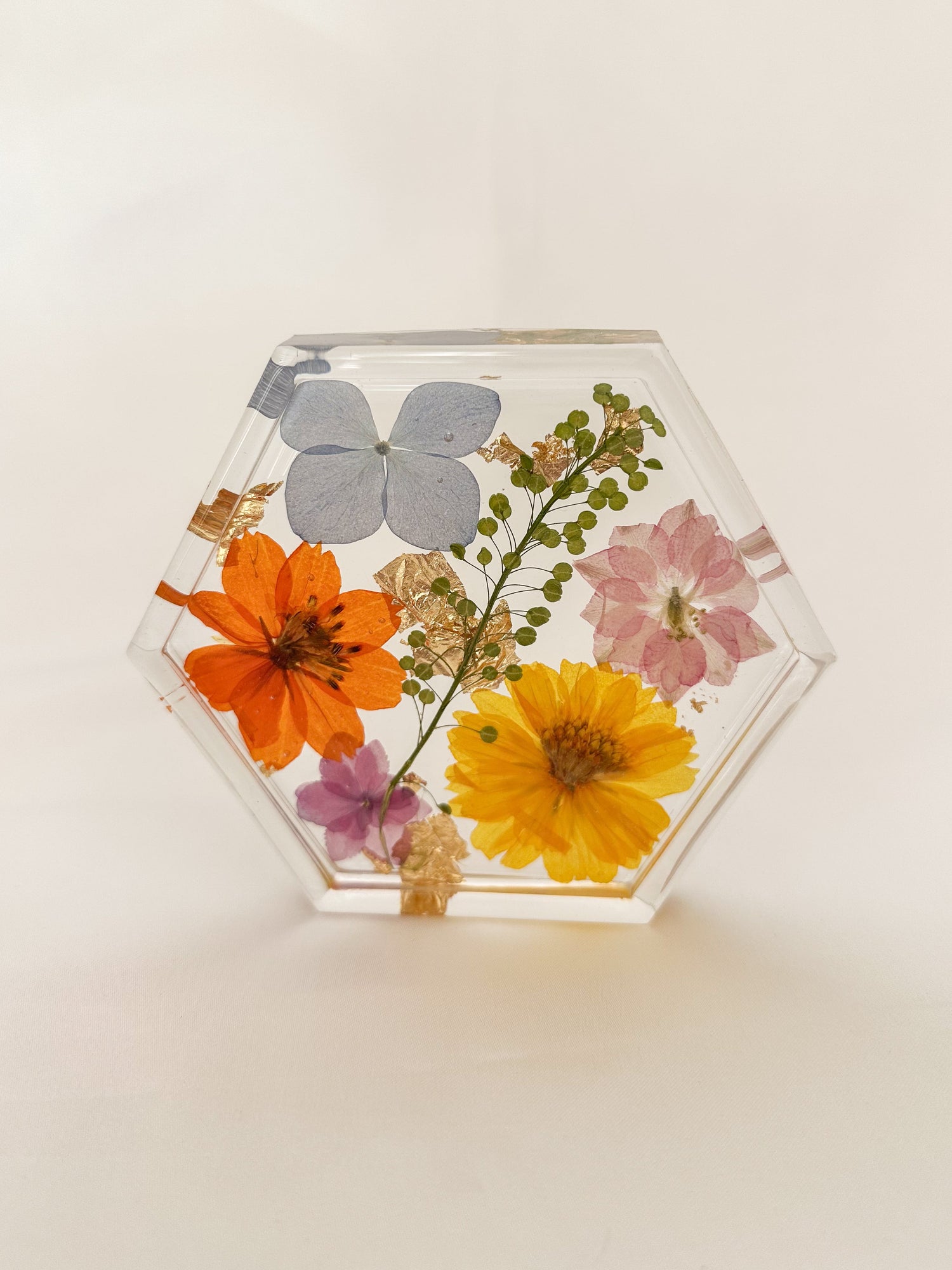 This pressed flower coaster is nature's way of saying "slow down and enjoy the moment." Real flowers are beautifully preserved in resin, creating a one-of-a-kind piece that works hard and looks stunning. Set it under your favorite mug to protect your table, or use it as a charming trinket dish for rings, coins, or small keepsakes. Either way, you're bringing a little garden magic to your everyday routine.