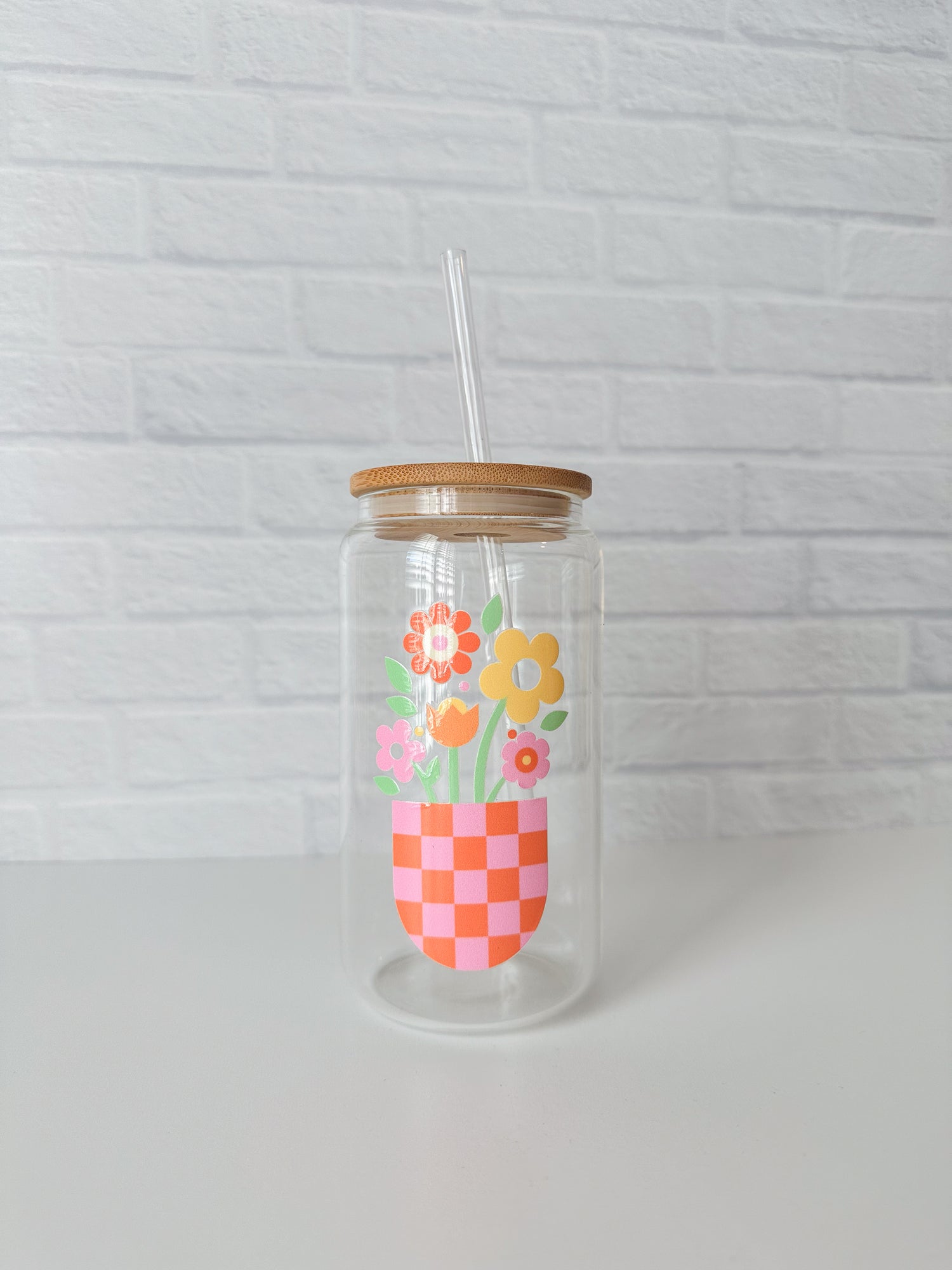 Every drink is more fun when you have it out of a cutie glass cup! Complete with a reusable straw (hard plastic) and bamboo lid for a more secure drinking experience, of course. Due to the handmade nature of these glasses, they are hand wash only (aka no waiting for the dishwasher to fill up and run before you can use it again!)