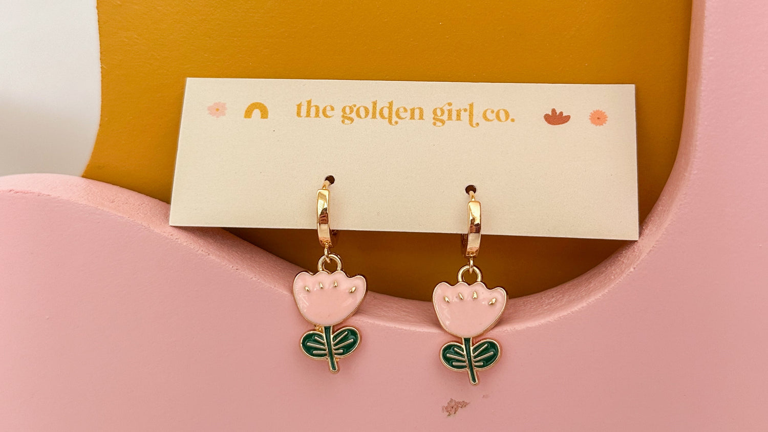 Pink Tulip Huggie Hoops