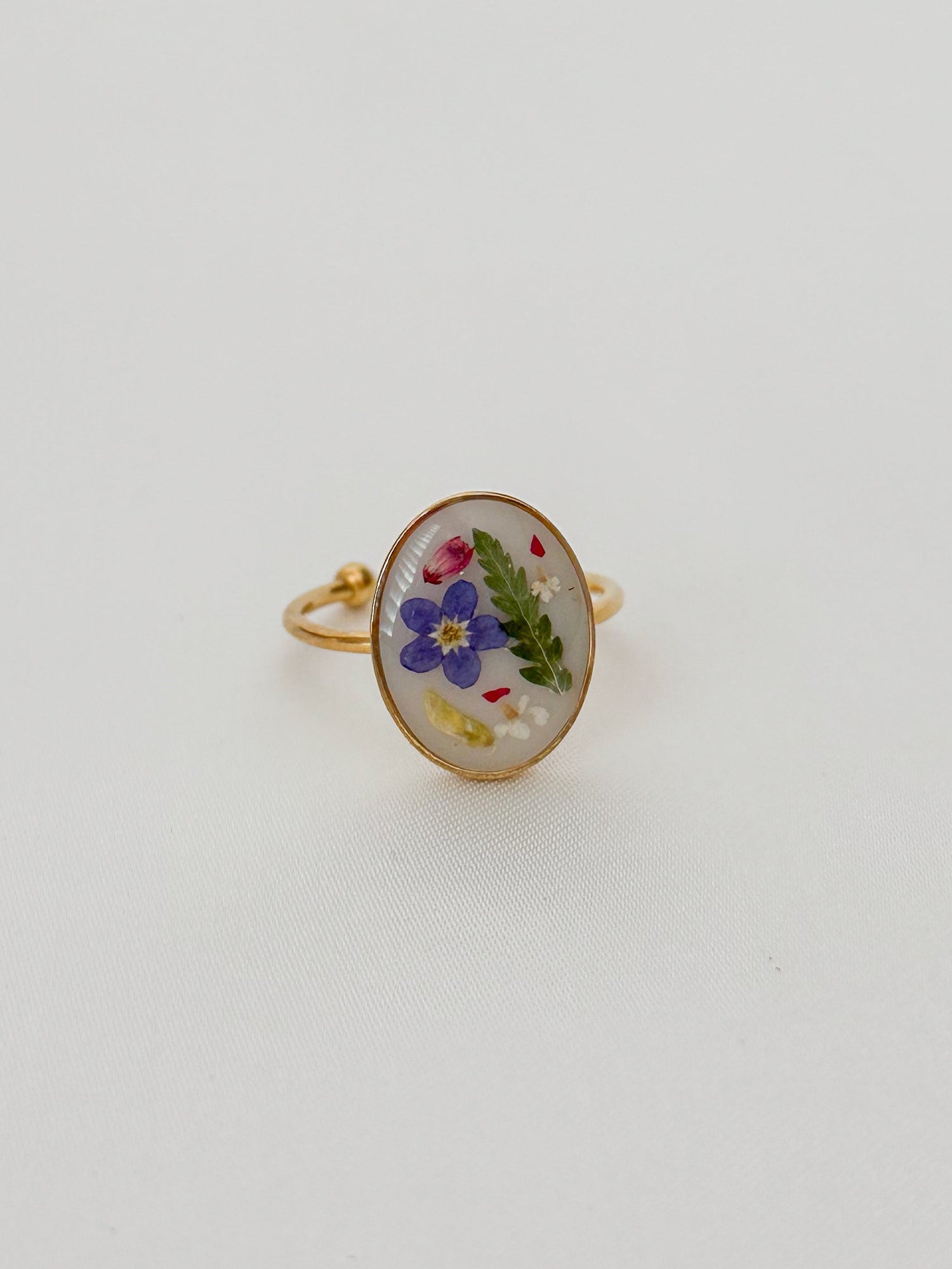 Made with real pressed flowers and a gold-plated, stainless steel band, these rings are the perfect accessory to any outfit!
